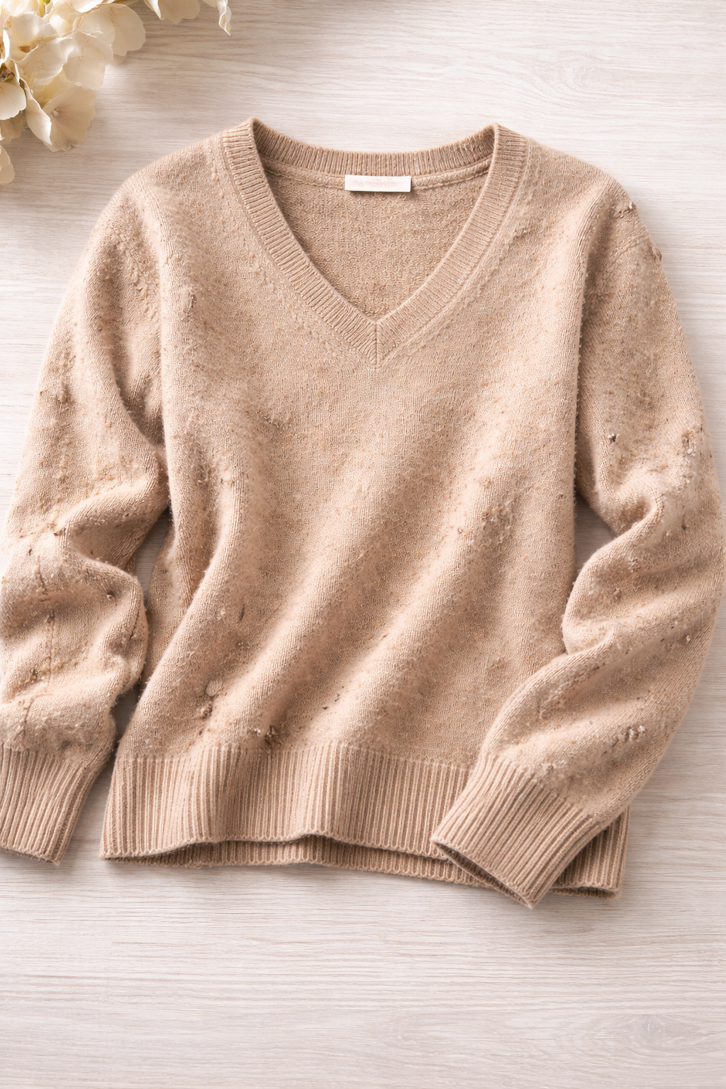 L'aspect et la tenue du cachemire peuvent évoluer avec le temps selon l'usage et l'entretien. Des conseils sont fournis par Cachemire afin d'aider à préserver votre pull dans les meilleures conditions possibles.